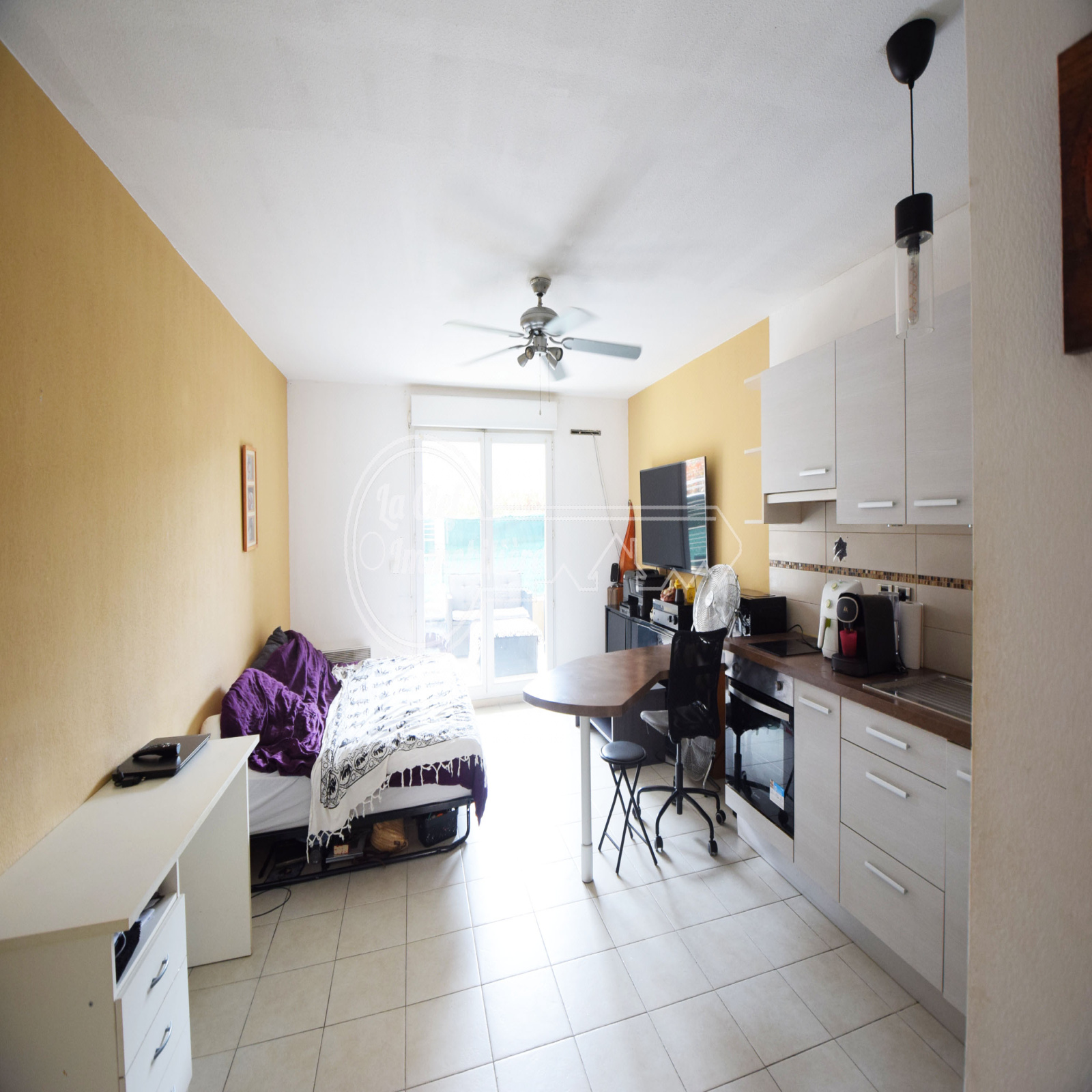 NICE EST : Dans immeuble de 2008, magnifique 2 pièces de 40.41m² avec terrasse de 9m², balcon de 4.5m² et possibilité achat d'une place de parking en sous-sol à 13000€. Appartement situé au 1er étage avec ascenseur, en très bon état général (cuisine équipée, double vitrage...), calme (en retrait de la rue), lumineux, traversant Nord-Sud, composé d'un beau salon avec cuisine US donnant sur la terrasse Sud sans vis-à-vis, un dégagement, une salle de bains avec WC et une chambre avec placard donnant sur le balcon. Proche Tram (arret Pont Michel) et toutes commodités. A saisir !