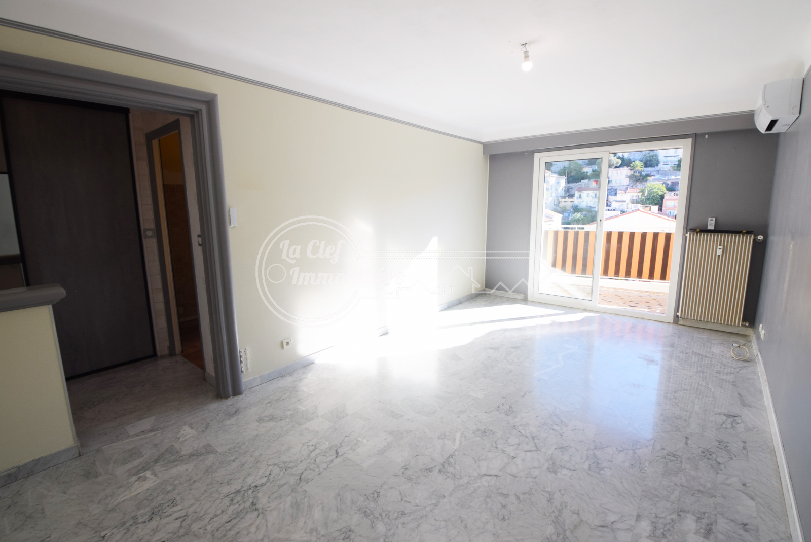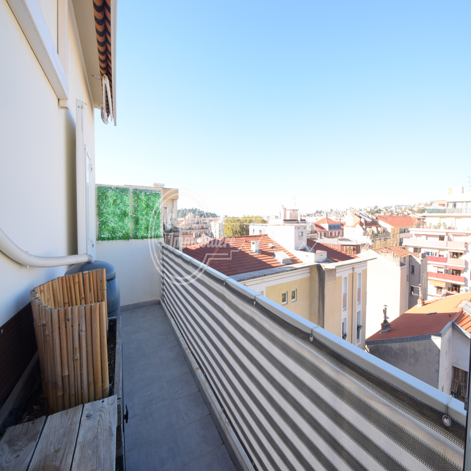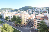 Nice Bas St Roch : Dans immeuble construit en 1973 bien entretenu et situé sur le bas du Boulevard St Roch, magnifique et vaste 2/3 pièces de 63.79m² avec Terrasse, Veranda, deux Balcons, Cave et possibilité achat Garage en supplément. Appartement situé au 7e et dernier étage avec ascenseur, traversant Est-Ouest, calme, ensoleillé, vue très dégagée, en parfait état avec décoration soignée et belles prestations (clim, double vitrage, volets et store électrique...), composé d'une entrée avec placard, une cuisine indépendante aménagée et un beau salon donnant sur la terrasse à l'Est de 7.61m², une chambre avec 3 placards de rangements donnant sur un balcon de 7m², une belle salle d'eau, un dégagement avec accès sur la véranda de 5.6m², un WC, un dressing/bureau pouvant servir de petite chambre d'appoint et donnant sur un 2e balcon de 4m². Proche Tram, écoles et toutes commodités. Possibilité achat garage + 30000€.