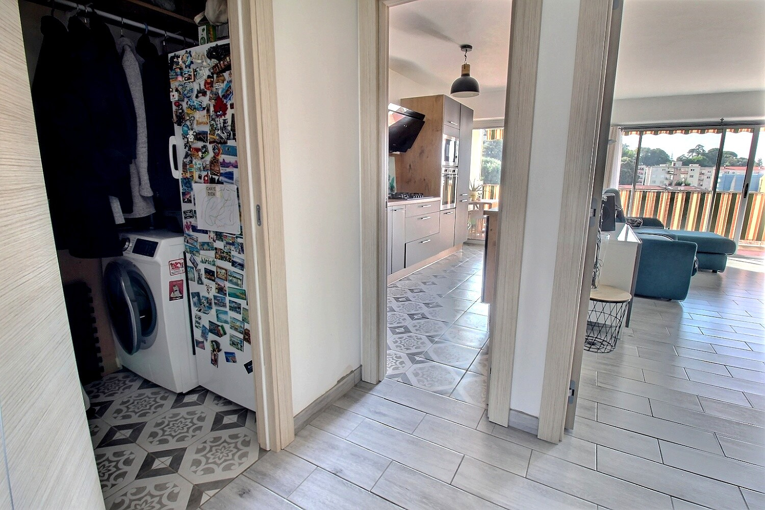 LE MYKONOS : Dans un immeuble très bien tenu, proche de la gare de Riquier et du Mont Boron, très beau 3 pièces de 69,42 m² en étage élevé, traversant Nord-Sud, comprenant un beau séjour donnant sur un balcon/terrasse de 9,13 m² exposé Sud avec vue dégagée, une cuisine indépendante, un dressing/buanderie, des rangements, une jolie salle d'eau, deux chambres avec placards et WC indépendant. L'appartement est en excellent état. Il dispose d'une climatisation, d'une porte blindée, de volets et stores électriques.Cave et garage fermé en supplément.