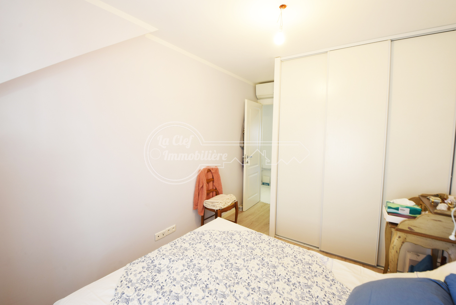 L’entrée donne sur l’espace nuit avec trois chambres au calme côté cour, toutes climatisées : une première utilisée en dressing (9,83 m²), une seconde avec placard (11,02 m²) et une troisième (10,65 m²).