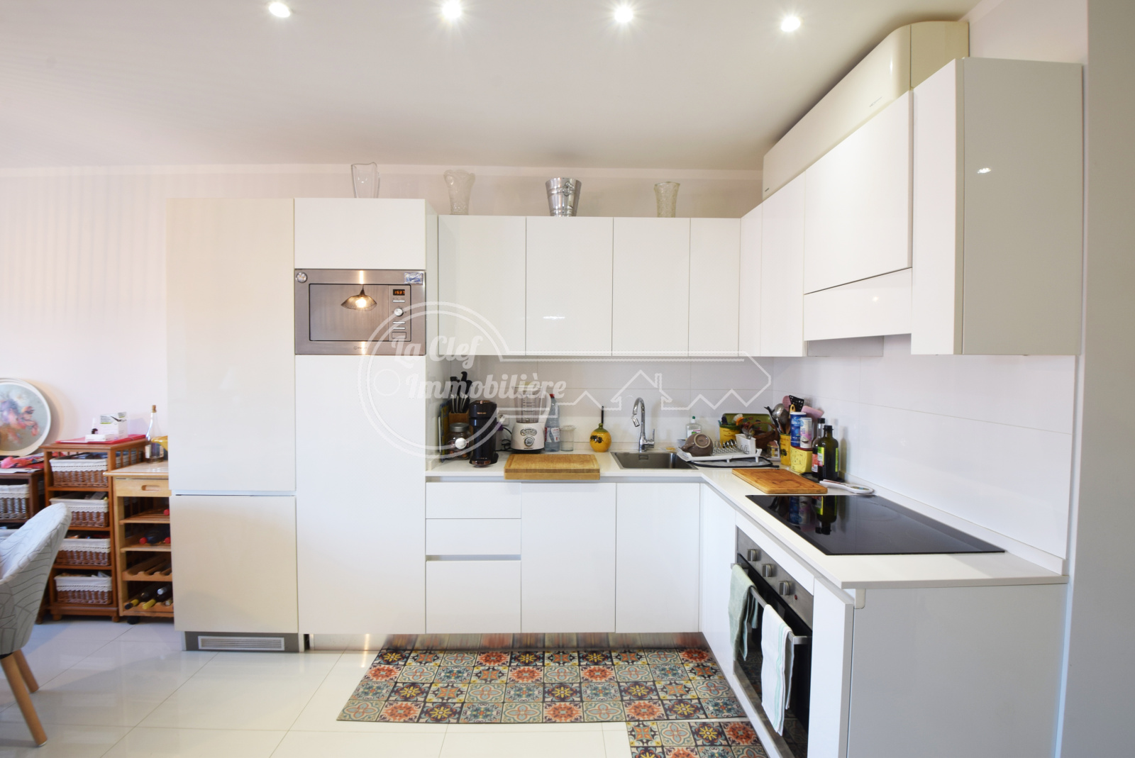 Le séjour offre un bel espace de vie avec une cuisine récente ouverte sur le salon (28 m²).