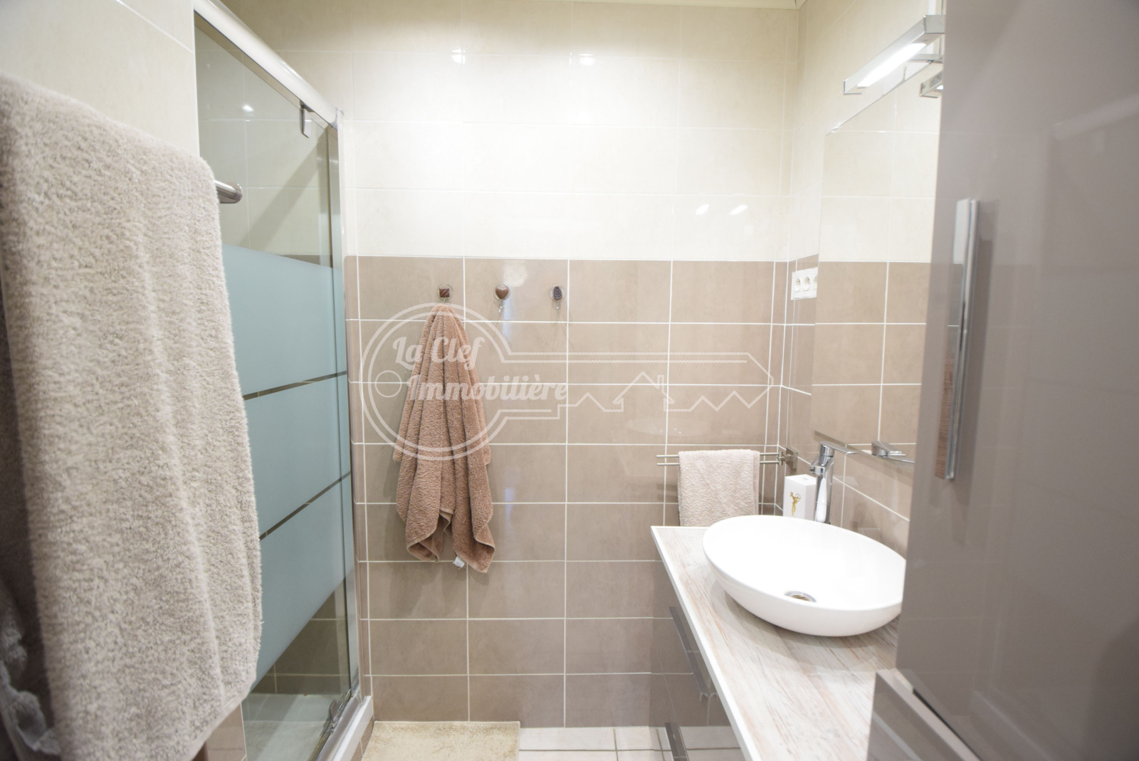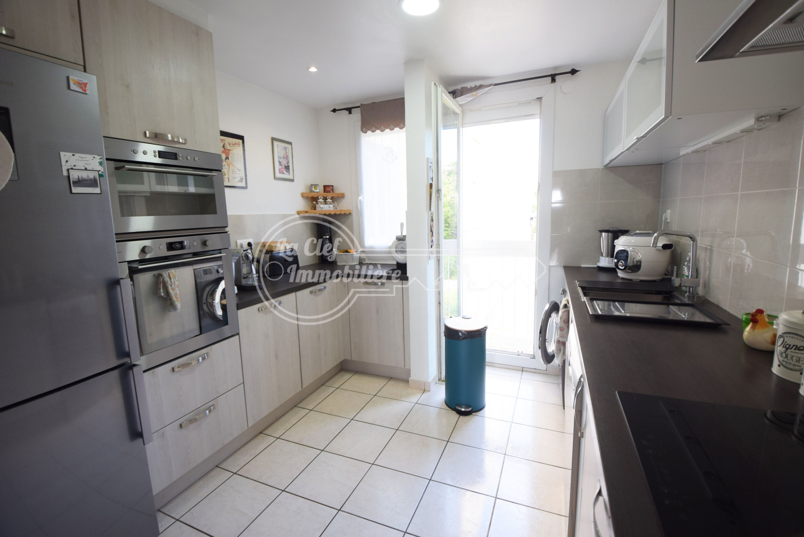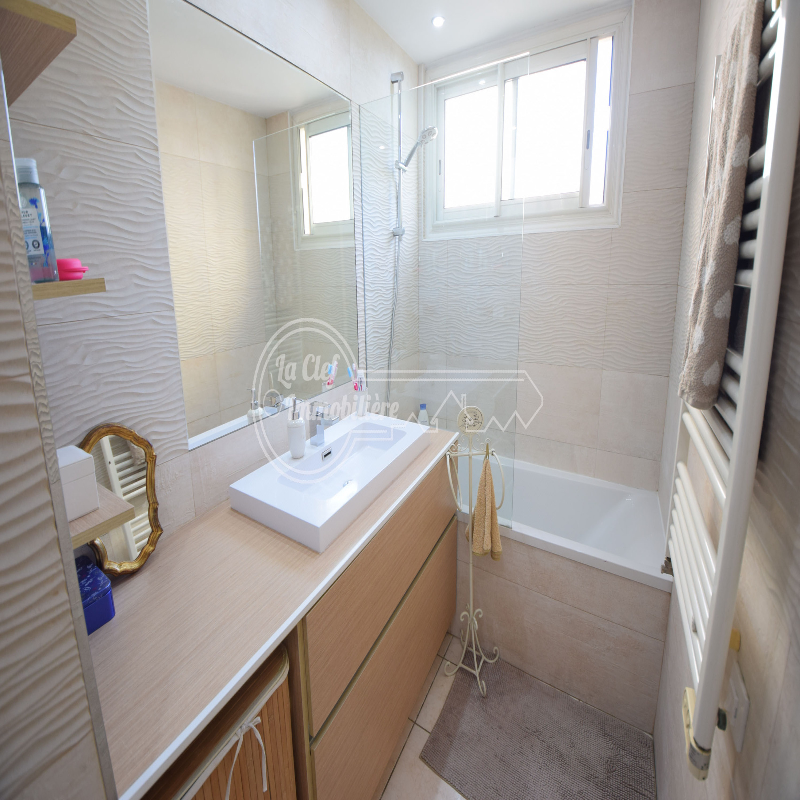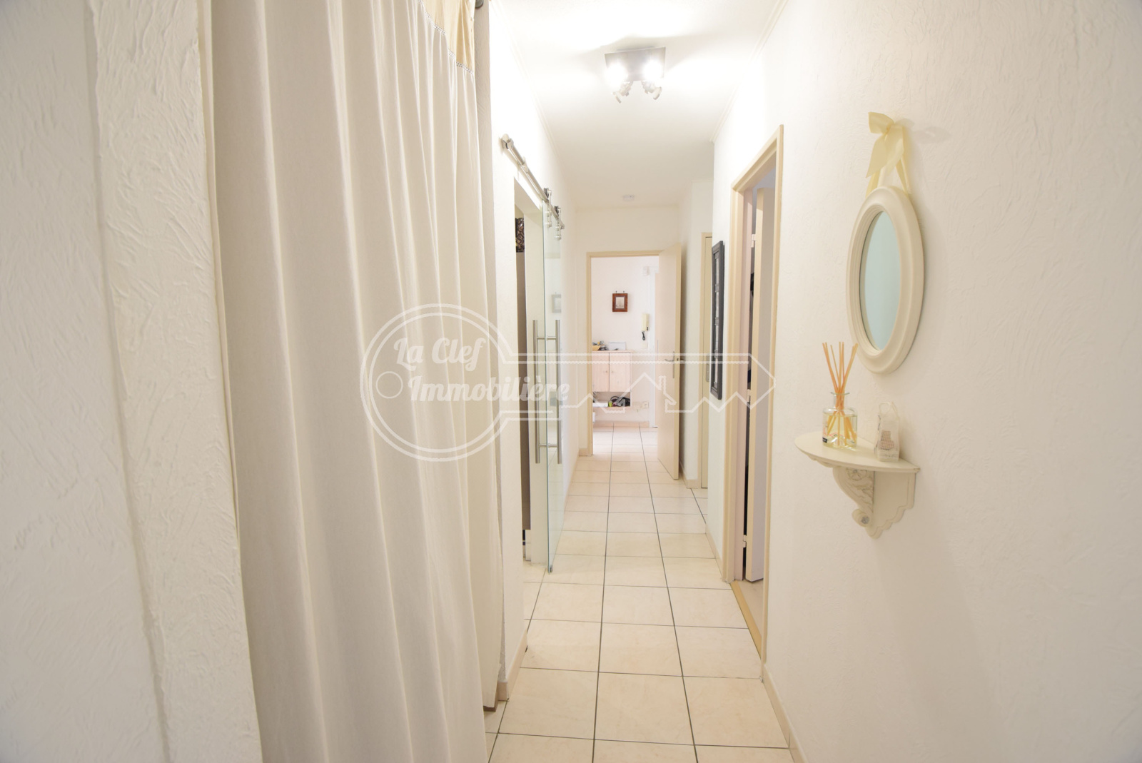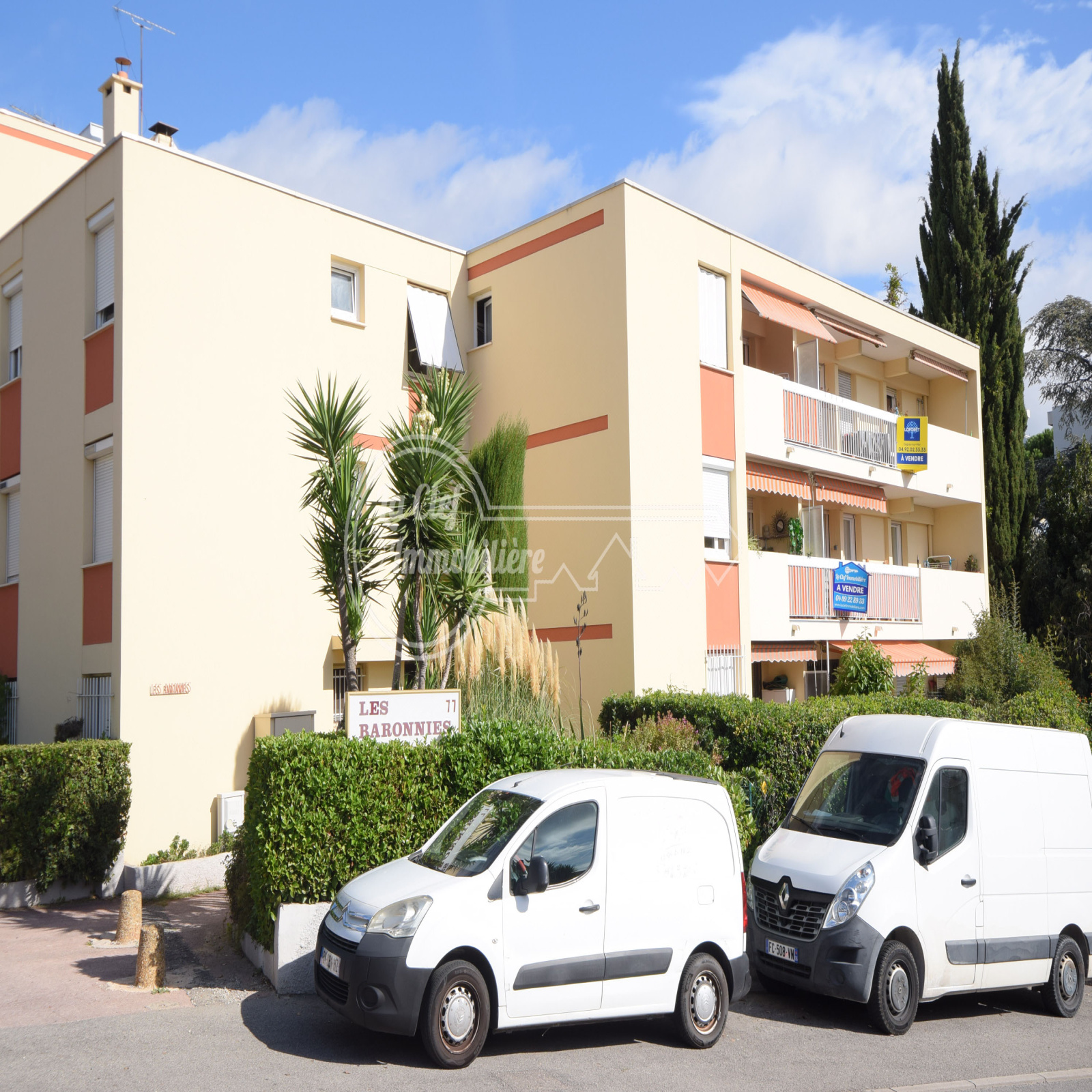 Cagnes sur Mer - Les Breguières / Avenue des Chênes : Dans immeuble moderne récemment ravalé, sublime 4/5 pièces de 98.15m² avec terrasse de 14m², cave et possibilité achat double garage. Appartement situé au 1er et avant dernier étage sans ascenseur, traversant Nord-Sud, lumineux, sans vis à vis, parfait état général, décoration soignée et belles prestations (double vitrage, volets électriques, porte blindée...), composé d'une entrée, un double séjour donnant sur la terrasse Sud, une belle cuisine indépendante équipée, un dégagement, une salle de bains, une salle d'eau, un WC indépendant et 3 belles chambres dont une avec dressing. A deux pas des plages, de la gare du Cros de Cagnes, des écoles et de toutes commodités. Possibilité achat d'un double garage fermé à 40000€ en sus.